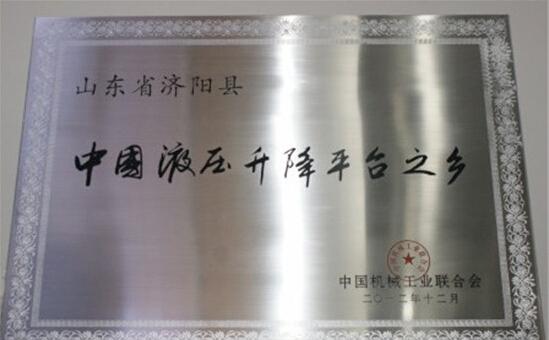 2012年12月14日,中國機械工業(yè)聯(lián)合會授予濟陽縣“中國液壓升降平臺之鄉(xiāng)”稱號。